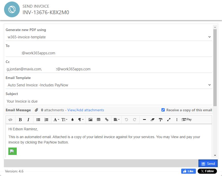 Sending the Work 365 Invoice
